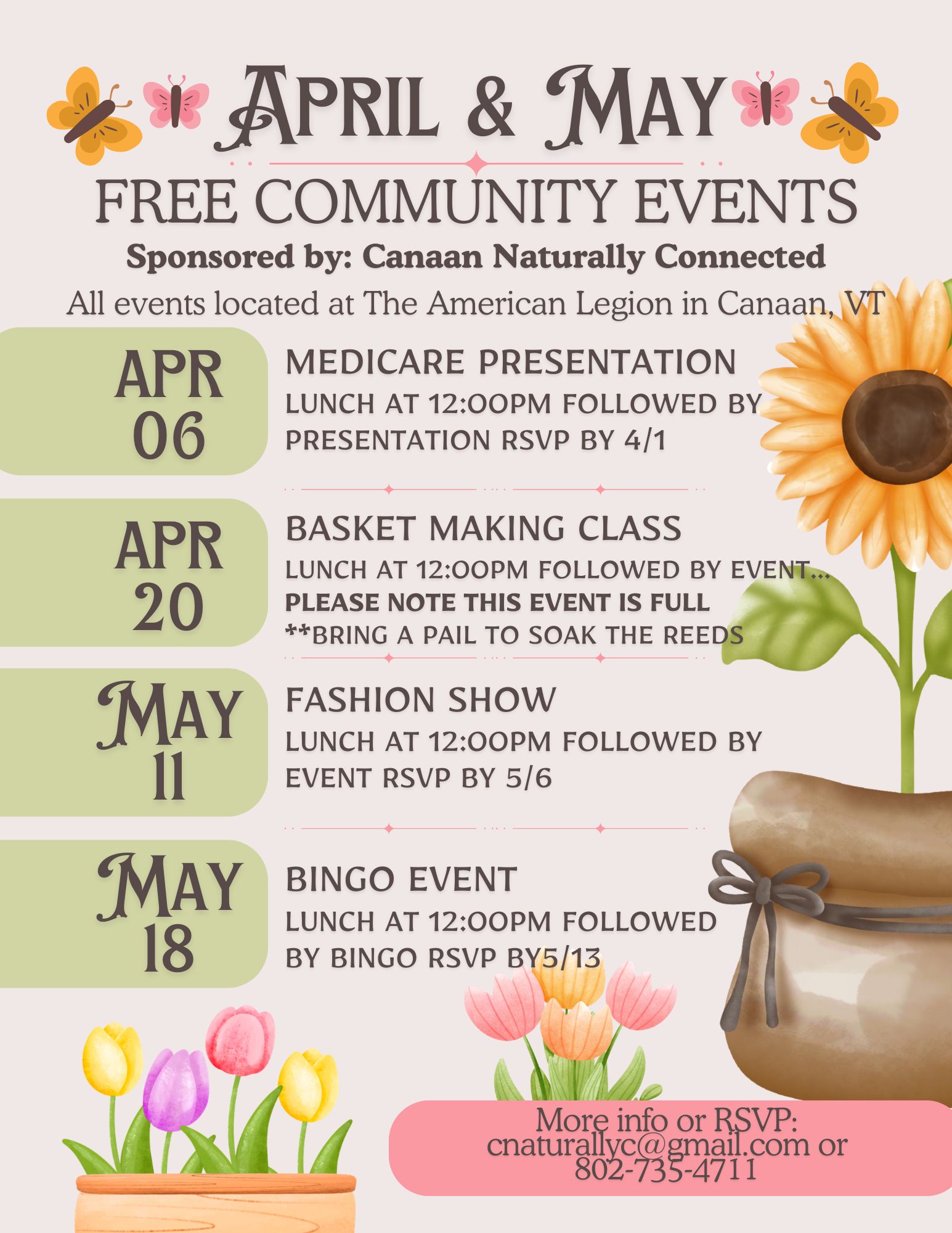 May 18, 2026 12:00 pm - 3:00 pm Canaan American Legion + Google Map